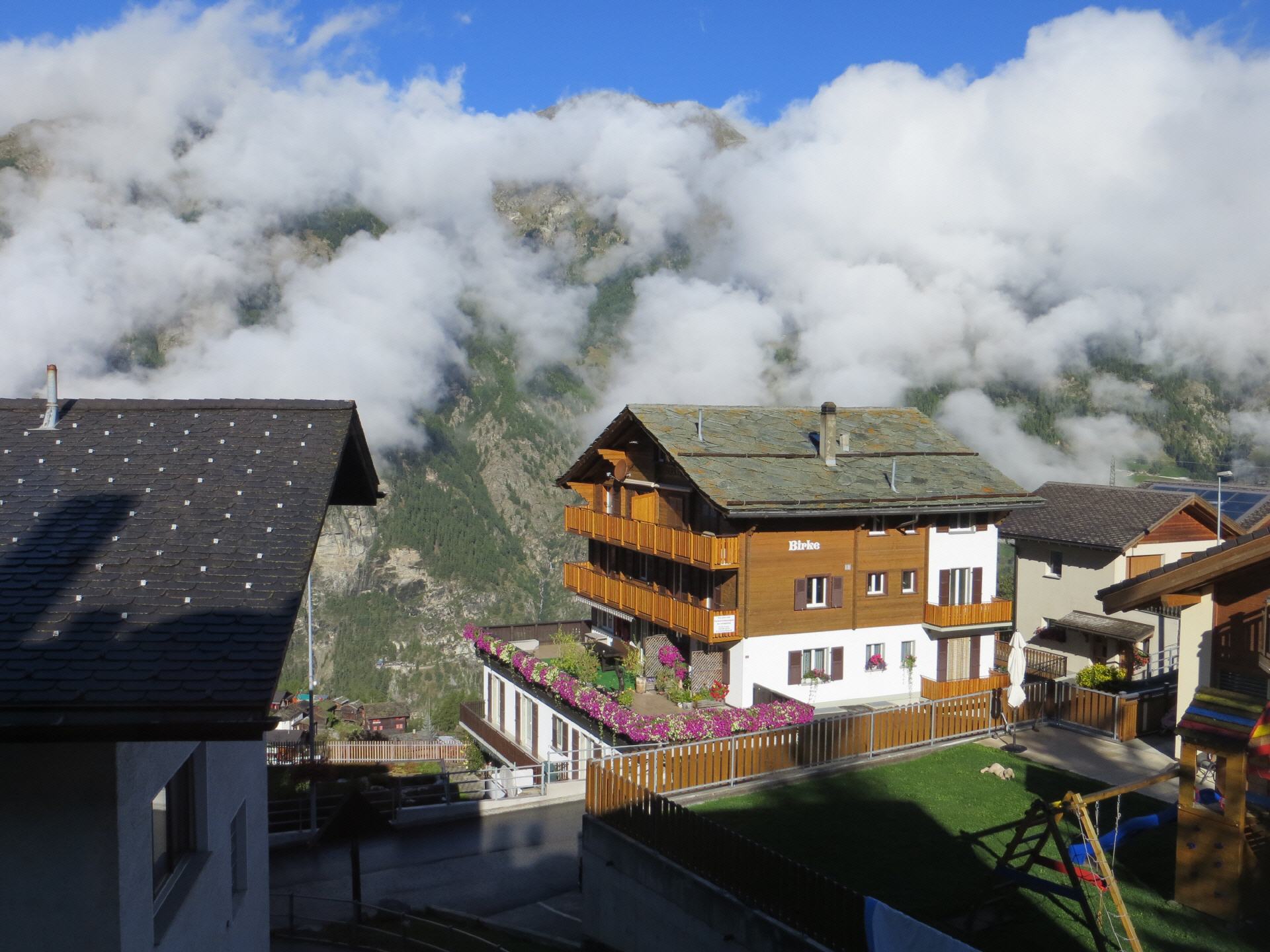 Die gut ausgestattete Küche grenzt unmittelbar an den Wohnraum an und ist mit diesem über einen Essplatz für bis zu sechs Perspnen verbunden. Von überall haben Sie einen Ausblick auf die umliegenden Berge.