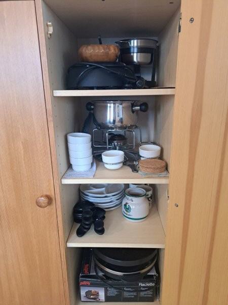 Im Wohnzimmer befinden sich ausreichend Sitzgelegenheiten (Ledergarnitur und Fernsehsessel) sowie mehrere Schränke. Dort finden Sie unter anderem Informationsmaterial zur Umgebung sowie eine Vielzahl von Gesellschaftsspielen für jedes Alter. Für Ihre Unterhaltung stehen weiterhin ein LCD-TV-Gerät, ein Blue-Ray-Player und eine Musikanlage bereit.